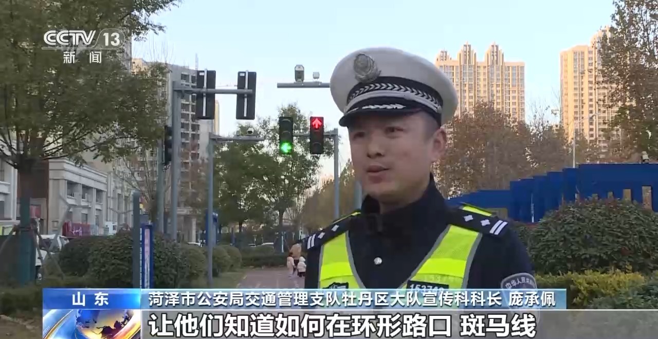 菏泽市公安局交通管理支队牡丹区大队宣传科科长 庞承佩:让他们知道如何在环形路口、斑马线、没有交通信号的路口这些情况下,怎么正常通行。
